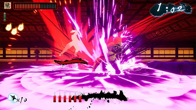 4本の腕を活かして一度に2本のカタナでイアイ攻撃を繰り出すバイオ・ニンジャ。「ダブル・イアイド」と呼ばれるその攻撃は、放たれたと認識した瞬間には当たっているほどのスピードを持つ。ノトーリアスと対峙するまでのステージは異質で、ヨロシサン製薬のセキュリティシステムたちが、ニンジャスレイヤーの行く手を阻む!